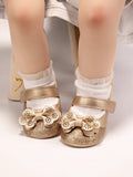 Baby Girl Princess Shoes – Gold Bow | Lightweight & Non-Slip Rubber Sole