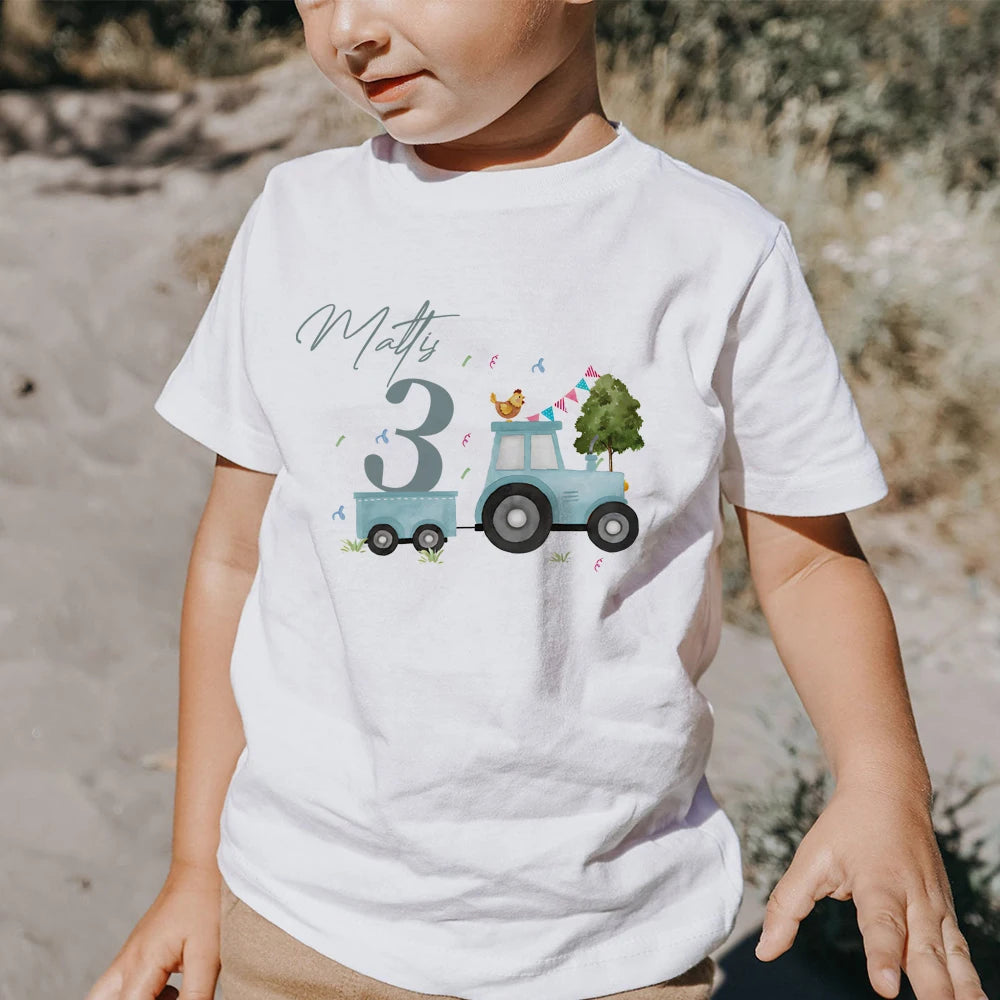 🚜 Personalized Tractor Birthday T-Shirt for Kids