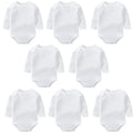 PureNest™ Basic White Baby Bodysuit Set – 3/5/8PCS 100% Cotton Long Sleeve Rompers (3–12 Months)