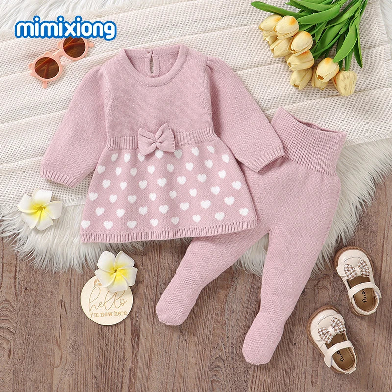 Keep your baby girl warm and stylish this winter with the Snow Bow 2-piece outfit set by Mimixiong. Designed for infants aged 0–9 months, this adorable ensemble includes a cute bowknot knit sweater top and matching cozy leggings, making it a perfect choice for chilly days, family photos, or casual outings.