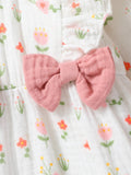 Sweetheart Breeze – Baby Girl Cotton Romper with Bow (0–9 Months)