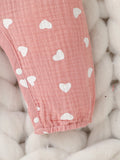 Keep your baby girl cool and adorable this summer with the Sweetheart Breeze Romper. Made from 100% soft cotton, this charming 0–9 months romper features a lovely heart print, full sleeves, and a sweet bowknot detail. With its easy pullover design and pastoral style, it's perfect for warm-weather outings or cozy days at home.